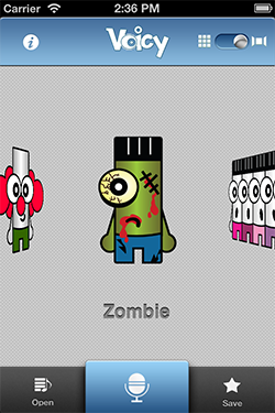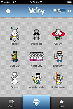 Simple and extremely easy to use user interface makes recording an effect a breeze. Enjoy two great views, the tile view for easy access to voice effects, or try our unique cover flow view that highlights the Voicy characters for a fun experience. Play, share, and modify your recordings from one location, in our recording view!